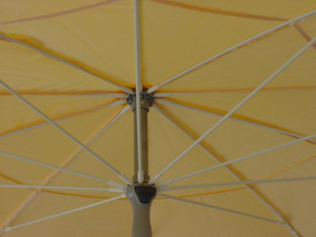 Rungossa lasikuituruodot, kestää kovaakin tuulta. Raytex 220 - 10 ribs - Frame fiberglass - Ø 300 cm.